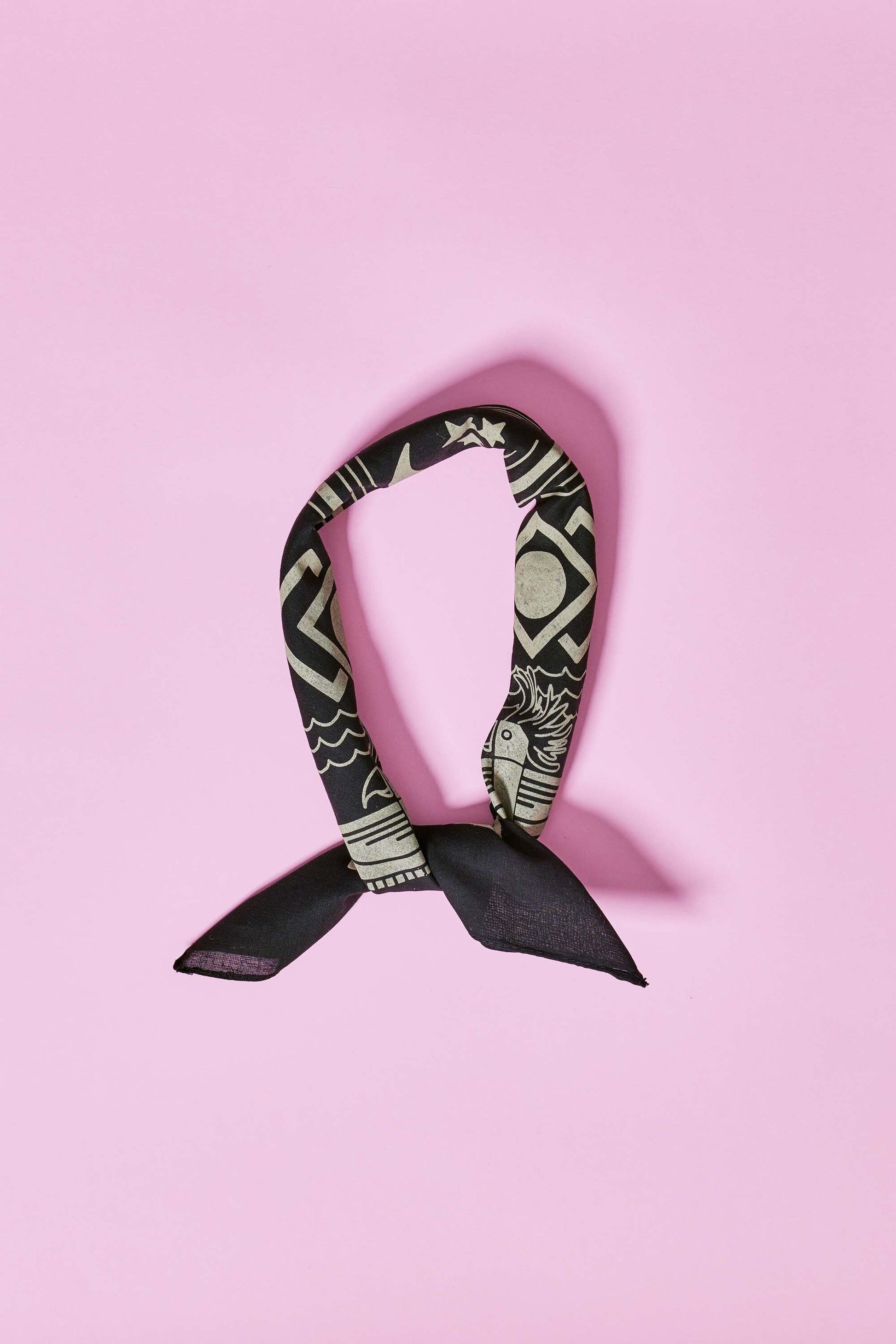 Handmade on Darkinjung Country, this bandana is carefully screen printed, cut, and sewn using premium 100% cotton fabric in a sophisticated black and grey colour palette. Lightweight and breathable, it’s perfect for festivals, travel, or everyday wear—adding a unique, artistic touch to your look.