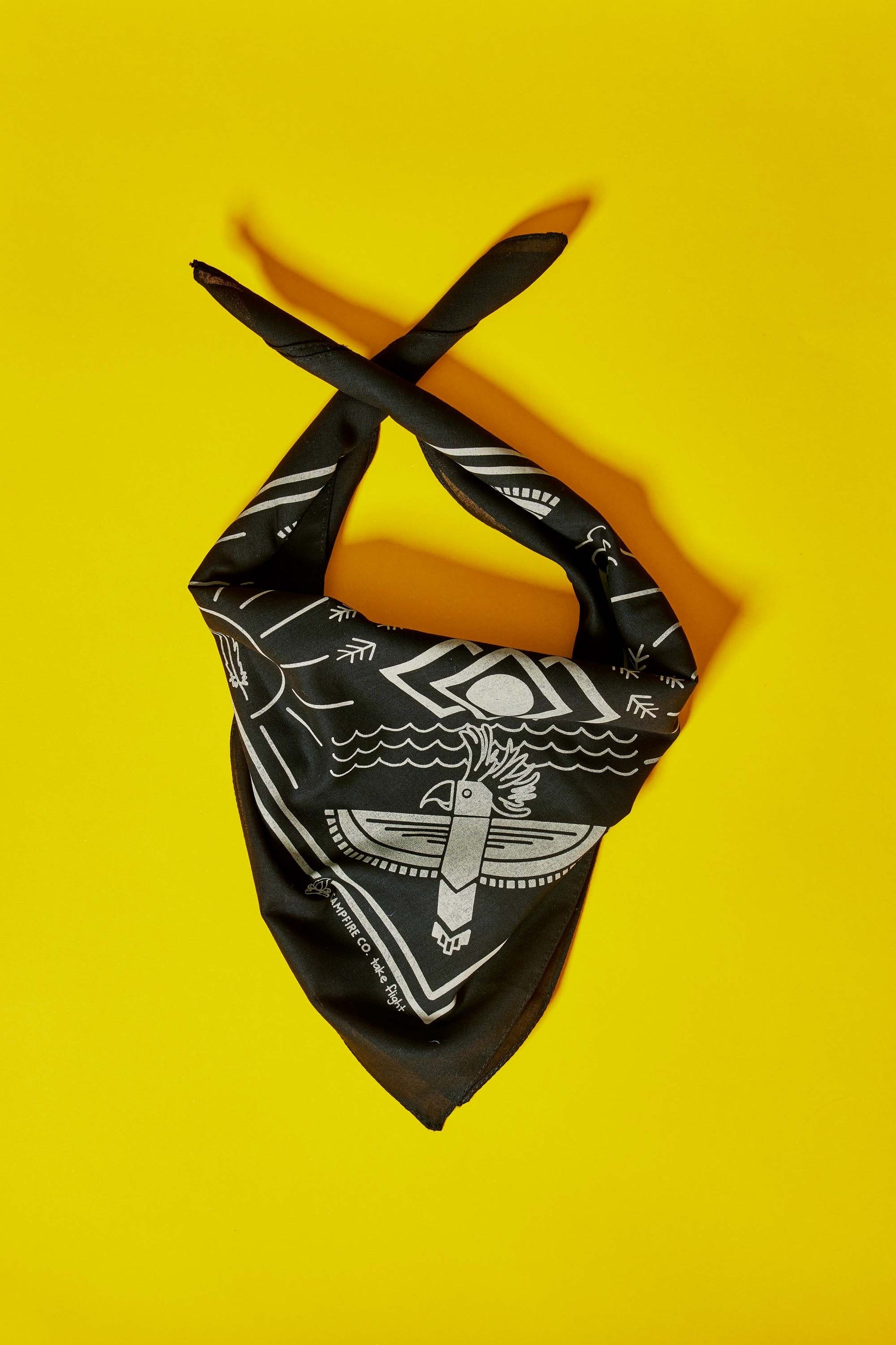 Soar into style with the Take Flight Bandana, featuring an exclusive hand-drawn design by Megan Young. Inspired by the freedom and grace of the cockatoo (Australian native bird), this totem design bandana celebrates adventure, strength, and connection to country. The design also includes a stylised version of Terrigal Beach, Megan’s home on Darkinjung Country, weaving local landscape and culture into every stitch.