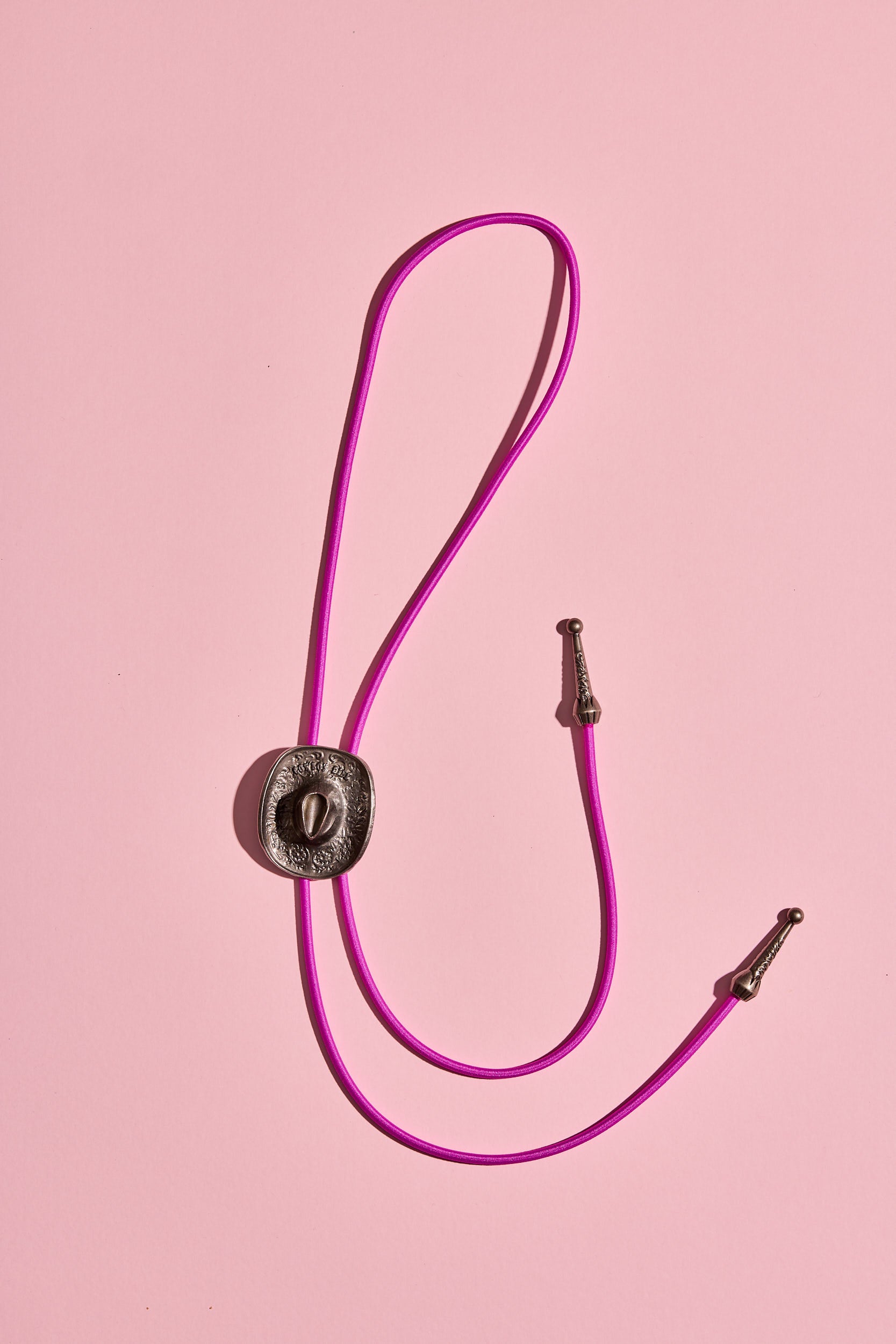 Bolo Tie with Bright Cord - Pink Cowboy Hat