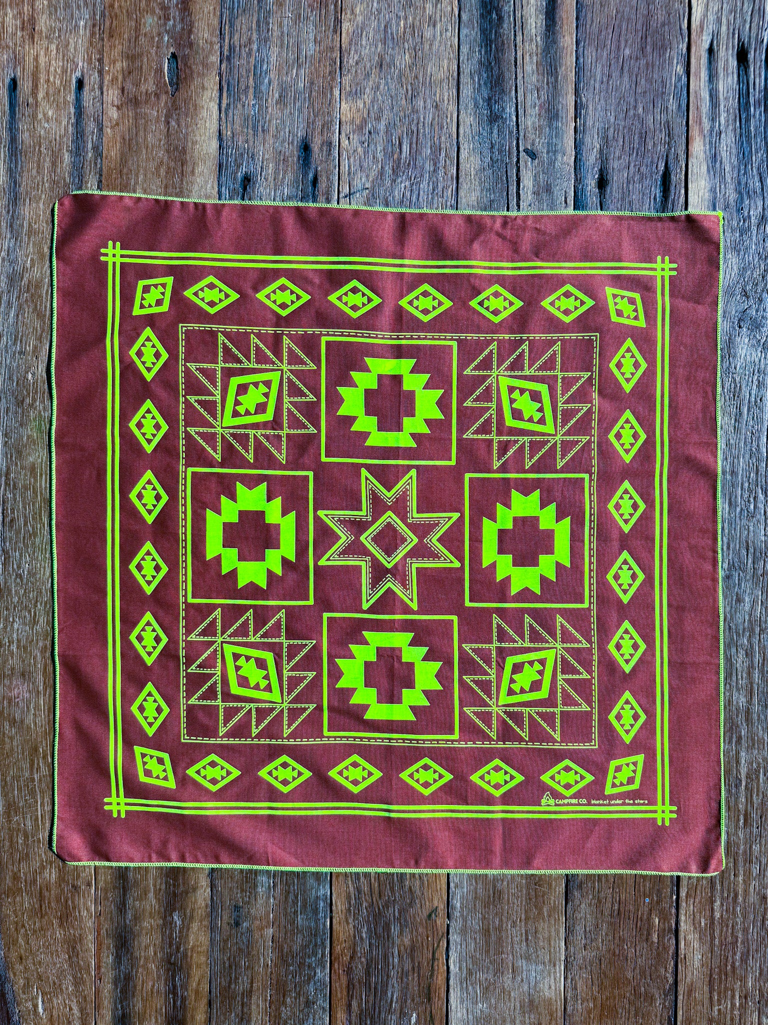 Handmade on Darkinjung Country, each bandana is crafted with care using 100% cotton and hand-pulled screen prints with water-based, eco-friendly inks. The striking brown and neon yellow Aztec pattern is a twist on traditional bandana design making it the perfect statement piece for festivals, road trips, or everyday wear.