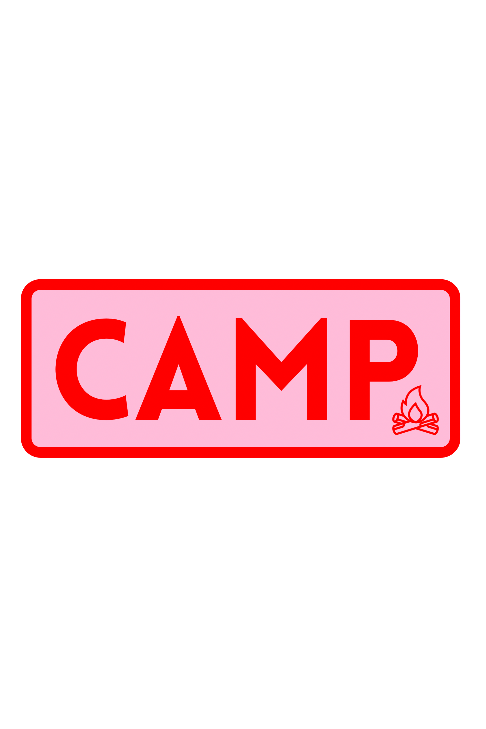 Our “CAMP” sticker is a bold and welcoming nod to community, connection, and the shared spark that brings us together. With a playful pink and red color palette and a minimalist campfire illustration, this design radiates warmth, inclusivity, and a little bit of rebellious joy.
