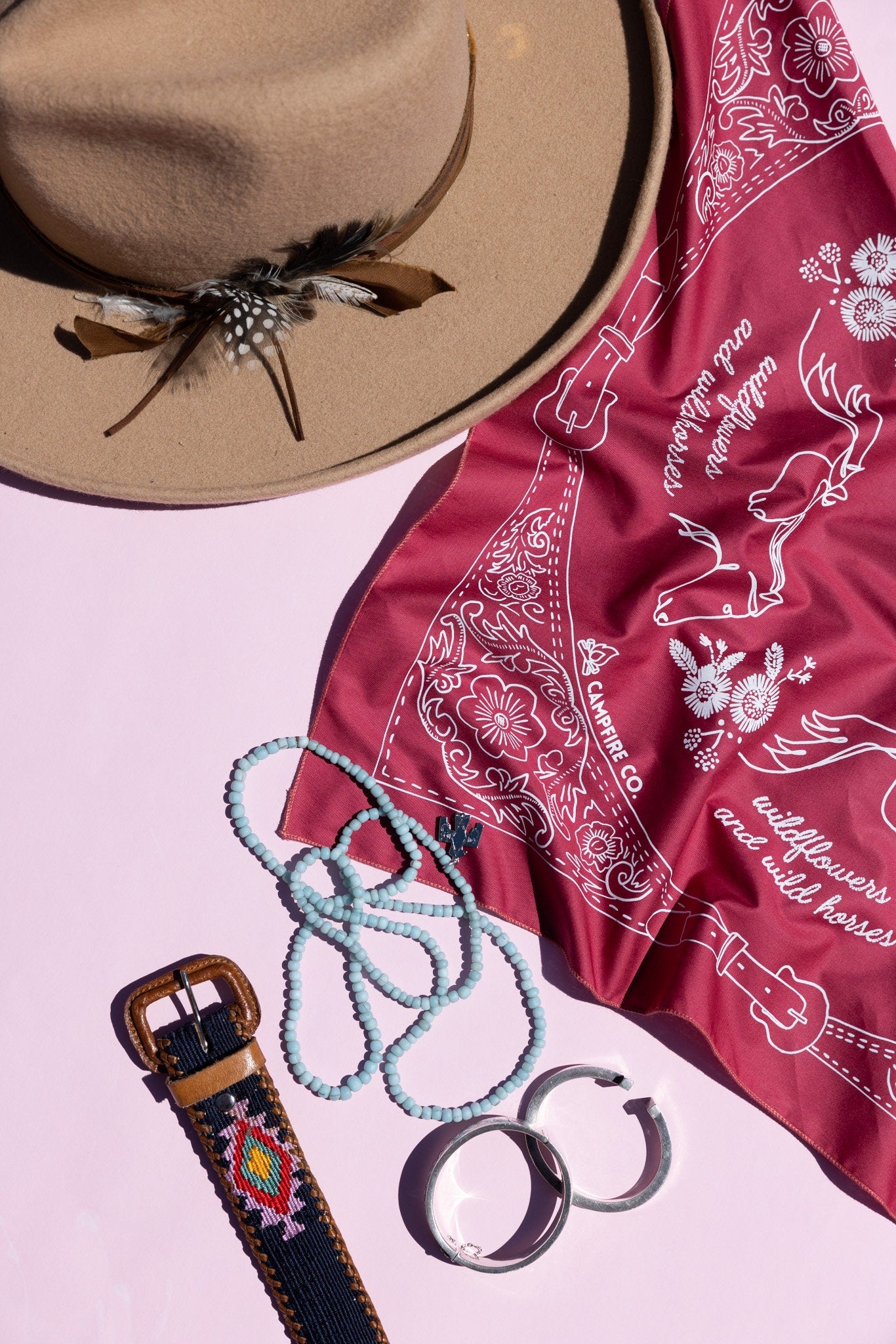 Yeehaw, wild one! Meet your new favourite accessory – the Wildflowers and Wild Horses Bandana from Campfire Co. Inspired by country soul, desert roads, and the spirit of the untamed West, this bandana is made for dreamers, drifters, and two-steppin' hearts.