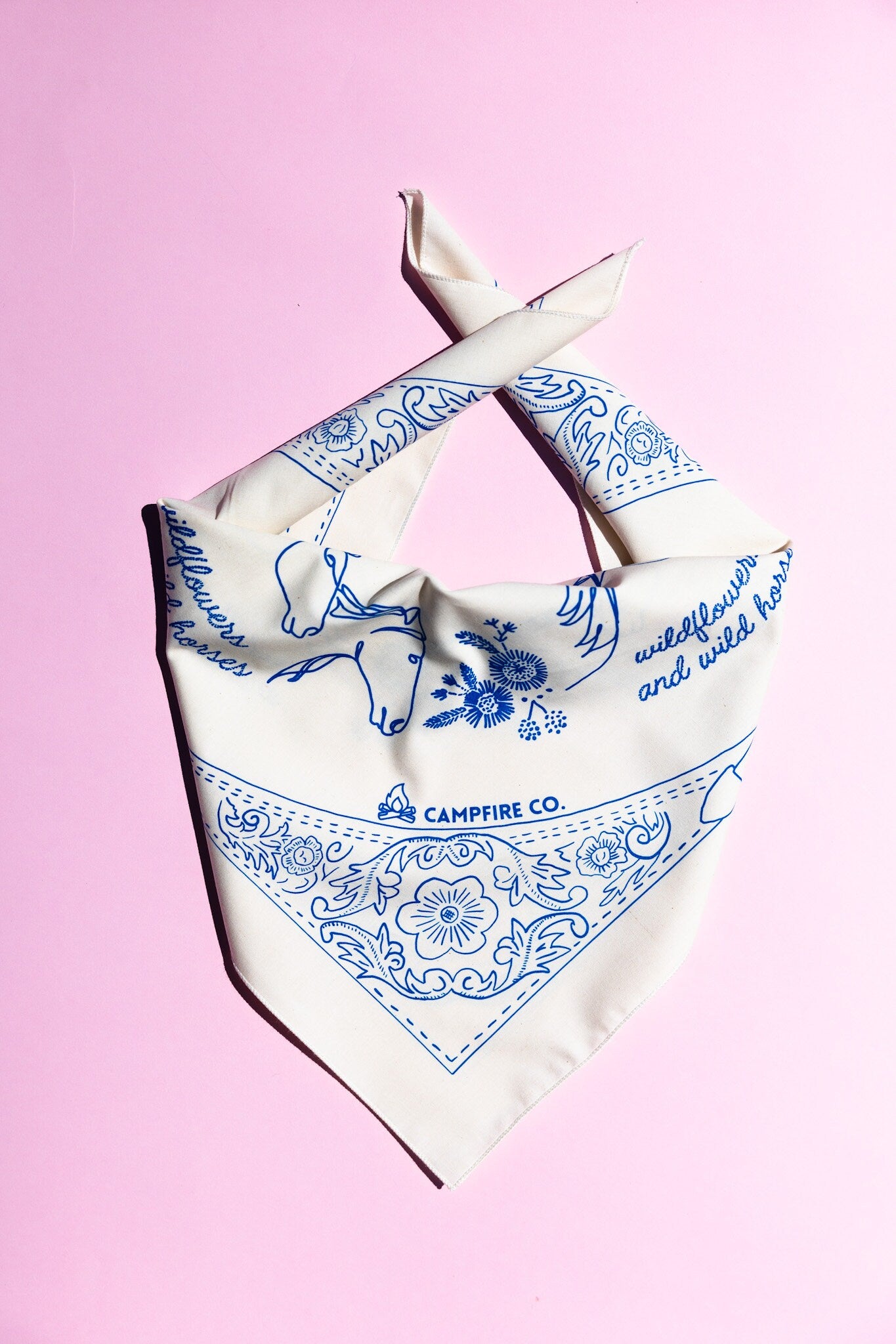 Ecru and Blue Wildflowers and Wild Horses bandana