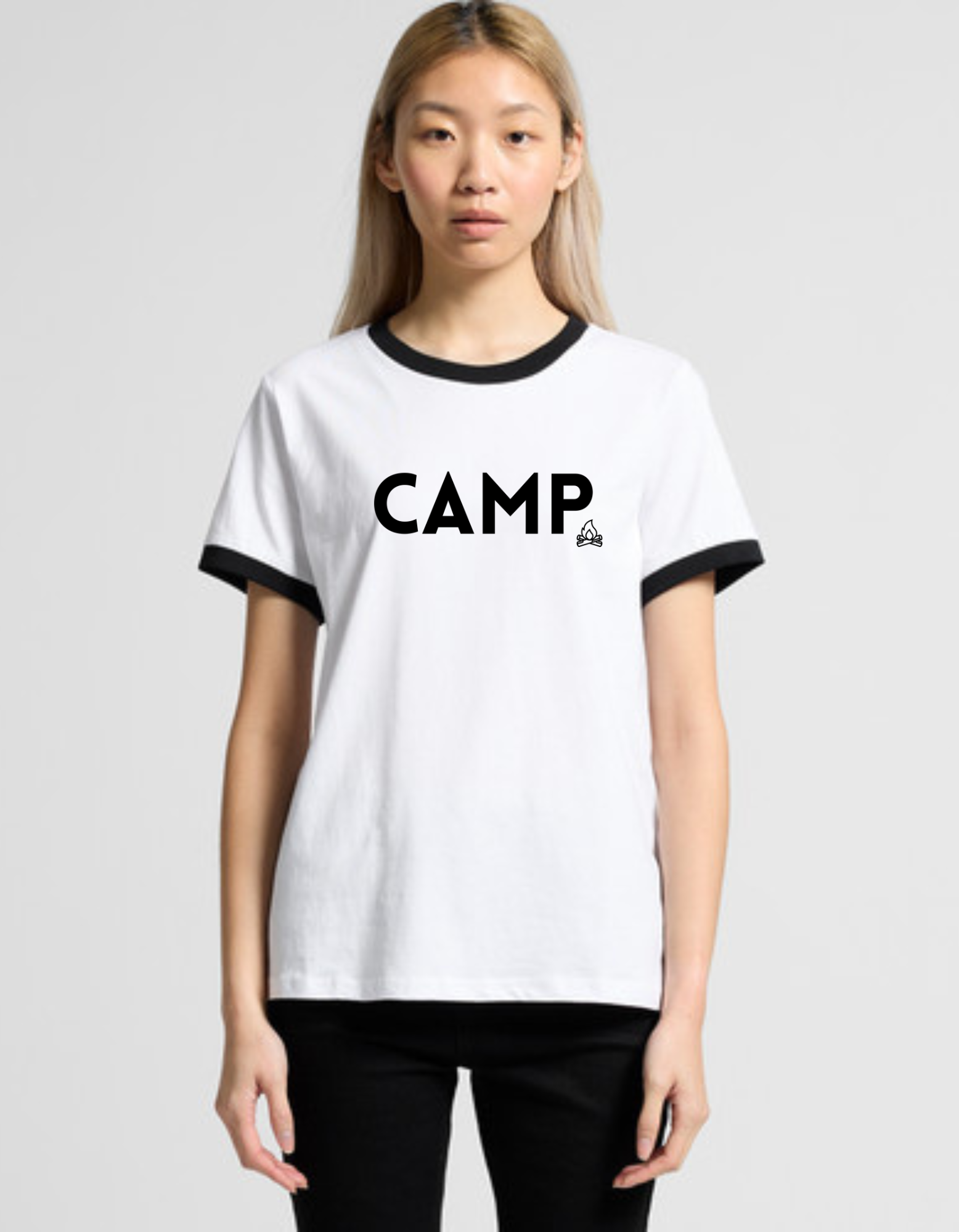 Step into timeless adventure with the Campfire Co. Vintage Retro CAMP T-Shirt – the perfect blend of nostalgic style and modern comfort. This women’s white ringer tee features bold black neck and sleeve bands, giving it that iconic throwback look inspired by classic outdoor gear and summer camp vibes.