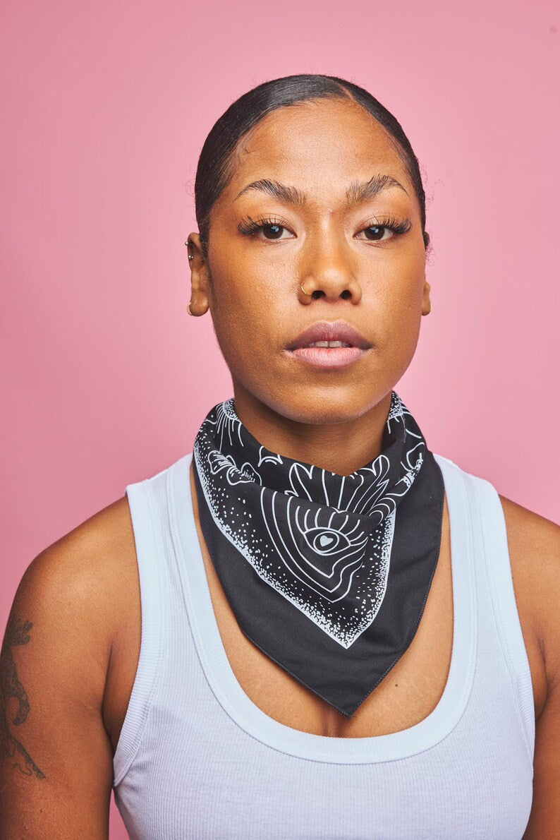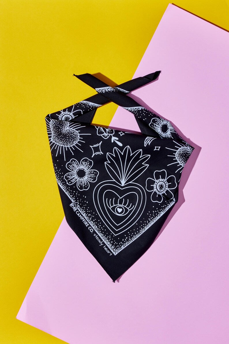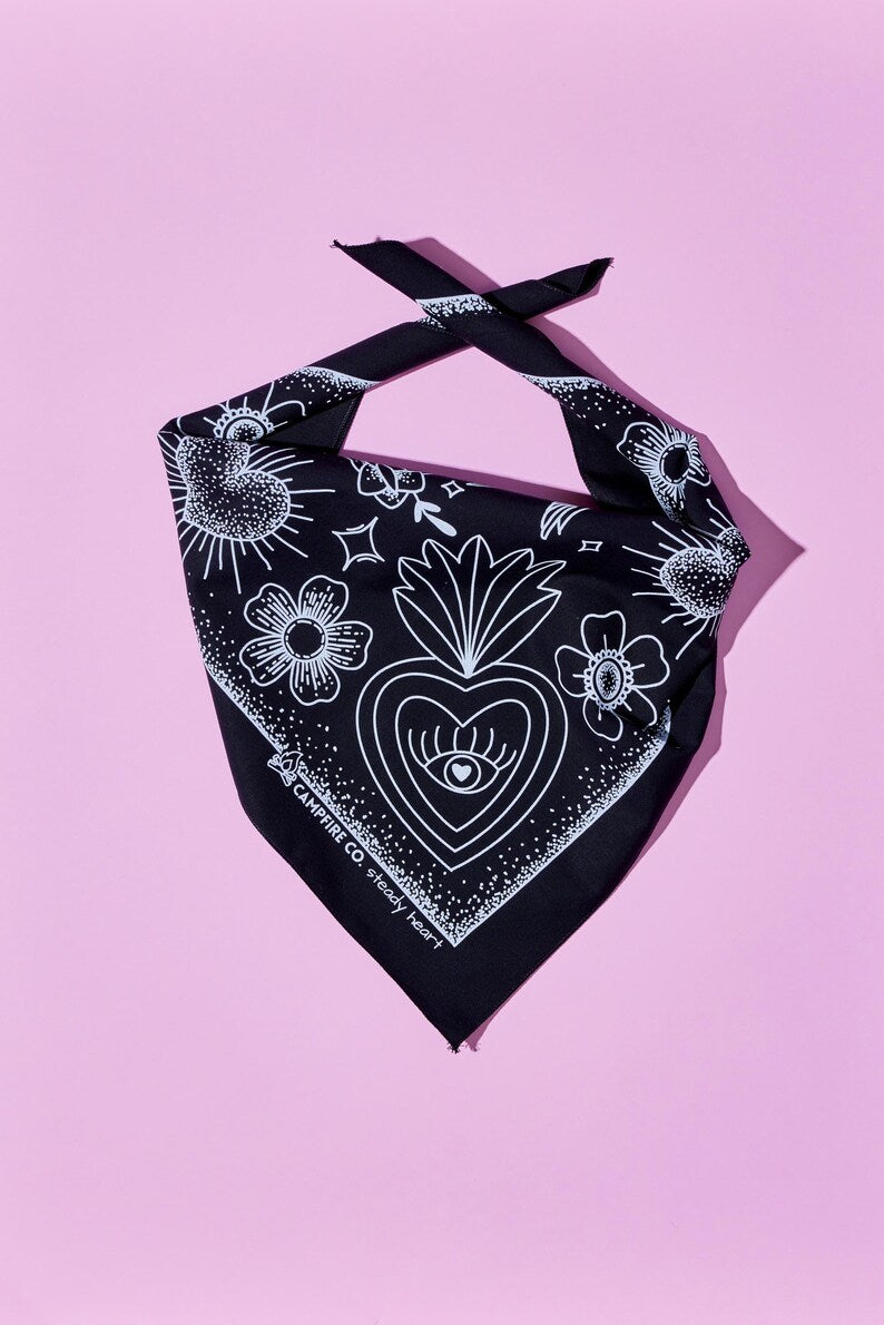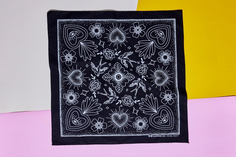 Inspired by the strength and softness in Kameron Marlowe’s song Steady Heart, this bandana is a tribute to staying grounded through every high and low. The Steady Heart Black & White Bandana blends bold style with emotional depth—featuring an exclusive, hand-drawn design by Australian illustrator Megan Young, infused with symbolism from classic tattoo art.